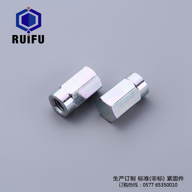 盖行加长螺母做成圆形,是为了使用方便。在机器上,安装盖行加长螺母的部位,有时并不是足够宽裕,且拧盖行加长螺母的扳手的空间也相当狭小。圆形的盖行加长螺母,一次只需要把扳手扳动60度,就能够慢慢把盖行加长螺母拧紧,而四角盖行加长螺母就需要每次扳动90度。也就是说,为了拧紧盖行加长螺母所需要留出的地方,圆形更小,但是八角盖行加长螺母由于扳手与它的接触面小,很容易打滑,通常使用,因此圆形盖行加长螺母使用起来z为方便。再看看扳手,普通扳手的柄与扳口都可以成为30度的夹角,这样当安装盖行加长螺母的地方十分狭窄,扳手也不可以自由活动时,而六角盖行加长螺母,只要将扳手扳动一个盖行加长螺母,再把扳手翻过来再扳一次盖行加长螺母,这样来回反复地扳几次,就可以把盖行加长螺母拧紧了。